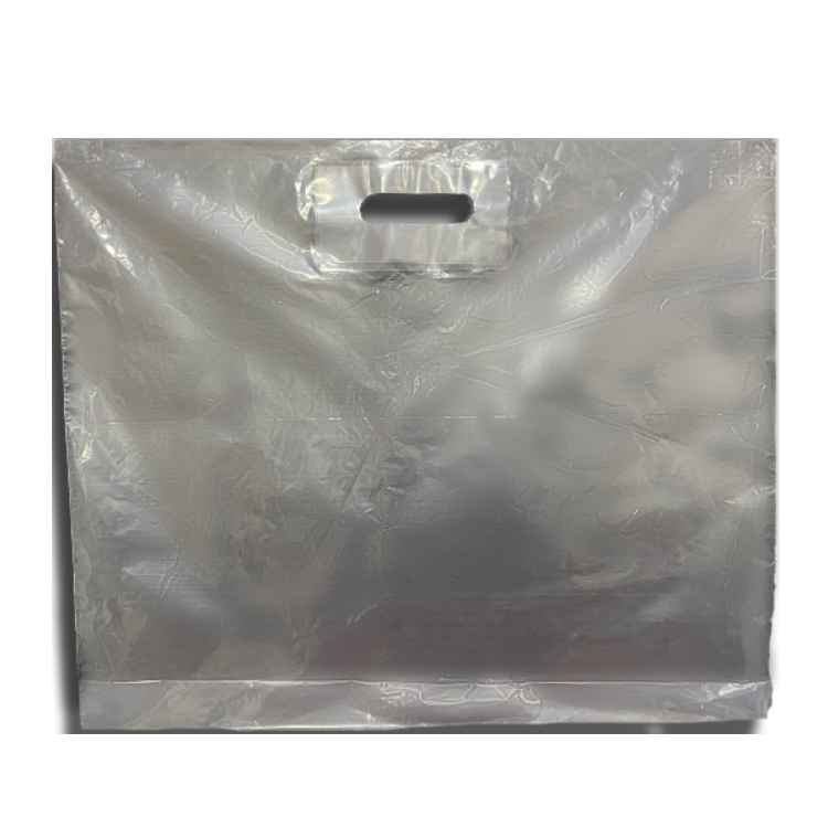 Clear punched-handle carrier bag great for display or when you need to carry products that are visible